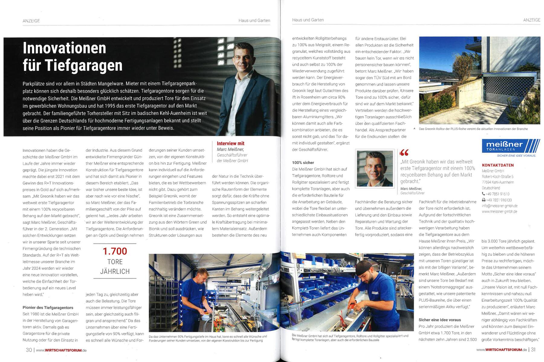 aus unserer Produktion ist Meißner in der Torbranche wegweisend. Mit Artikeln in einschlägigen