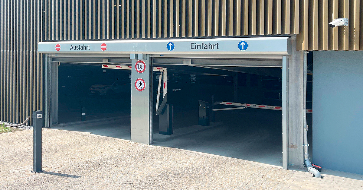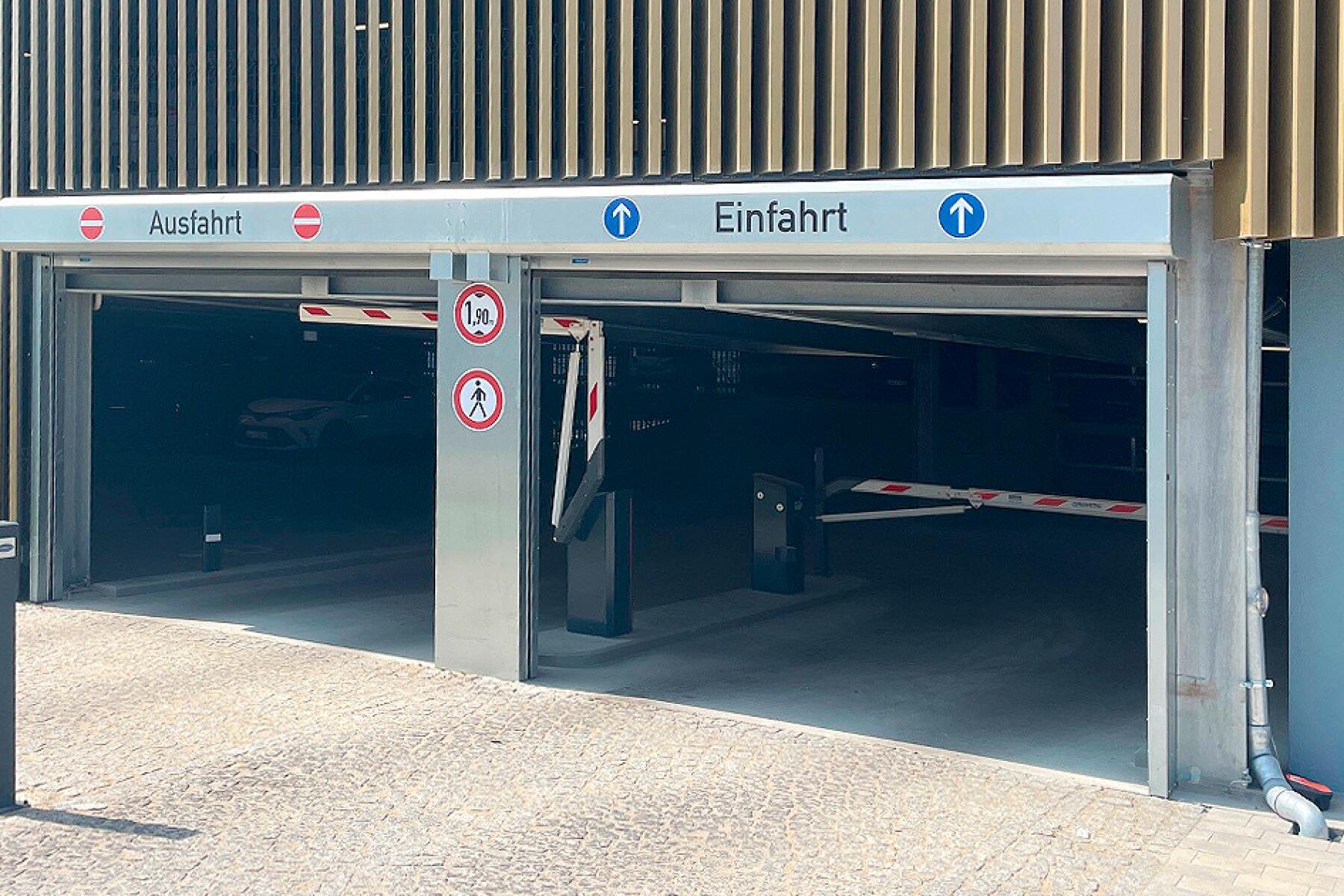 Wegen enger Platzverhältnisse innerhalb des Parkhaus, wurden die beiden Tor-Anlagen auf der