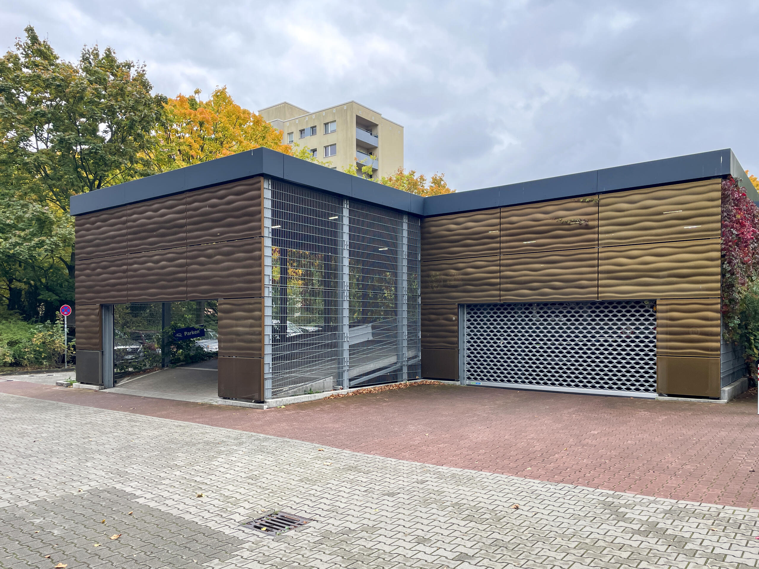 Das Parkhaus wird von Bewohnern des Wohnquartiers Gropiusstadt genutzt und sticht durch die architektonisch auffallende Fassade mit goldfarbenen Design-Verkleidungen ins Auge.